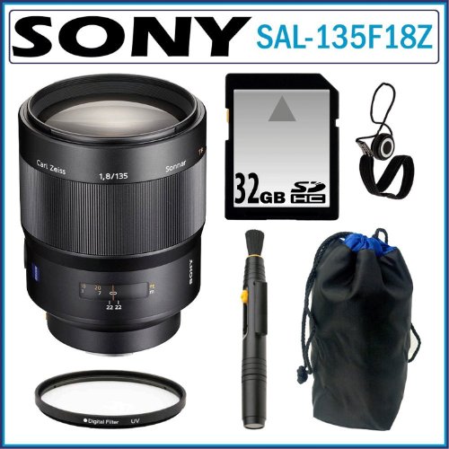 Discount Sony SAL-135F18Z 135mm f/1.8 Carl Zeiss Sonnar T Telephoto Lens + Sony 32GB SDHC + Lens Pouch + UV Lens Filter + Lens Pen + Lens Cap Keeper