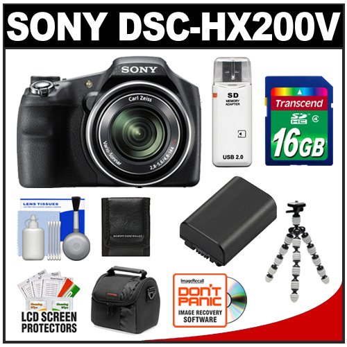 Discount Sony Cyber-Shot DSC-HX200V GPS Digital Camera (Black) with 16GB Card + Battery + Flex Tripod + Accessory Kit